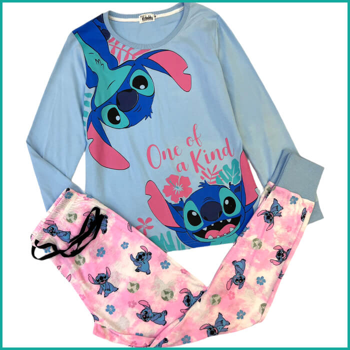 Disney Stitch Ladies Cotton Pajama Set - Pink Blue