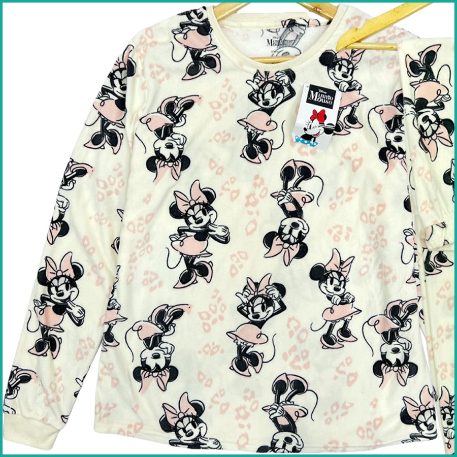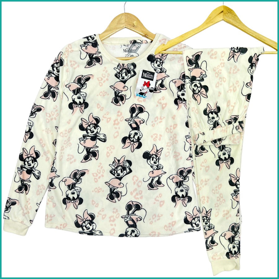 Happy Minnie Ladies Winter Makhmal Pajama Set - White