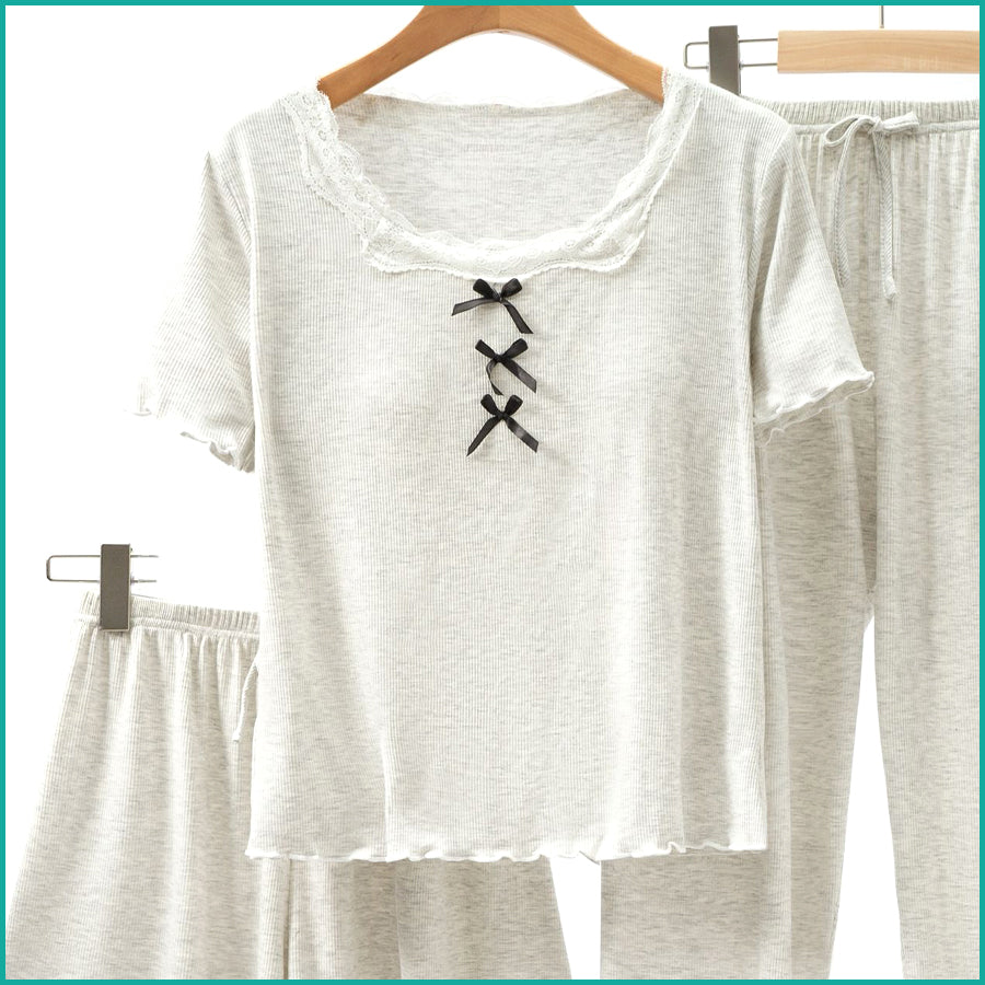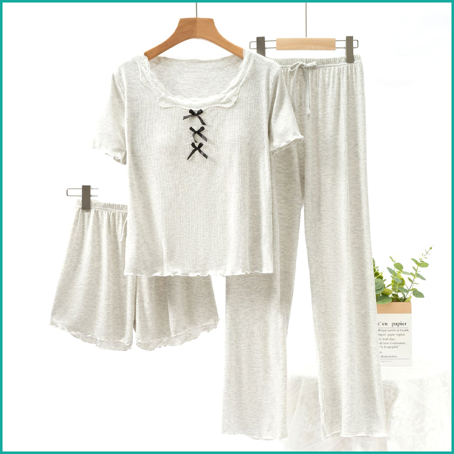 Ladies 3 Pcs Set Loungewear Pajama Set - Light Grey