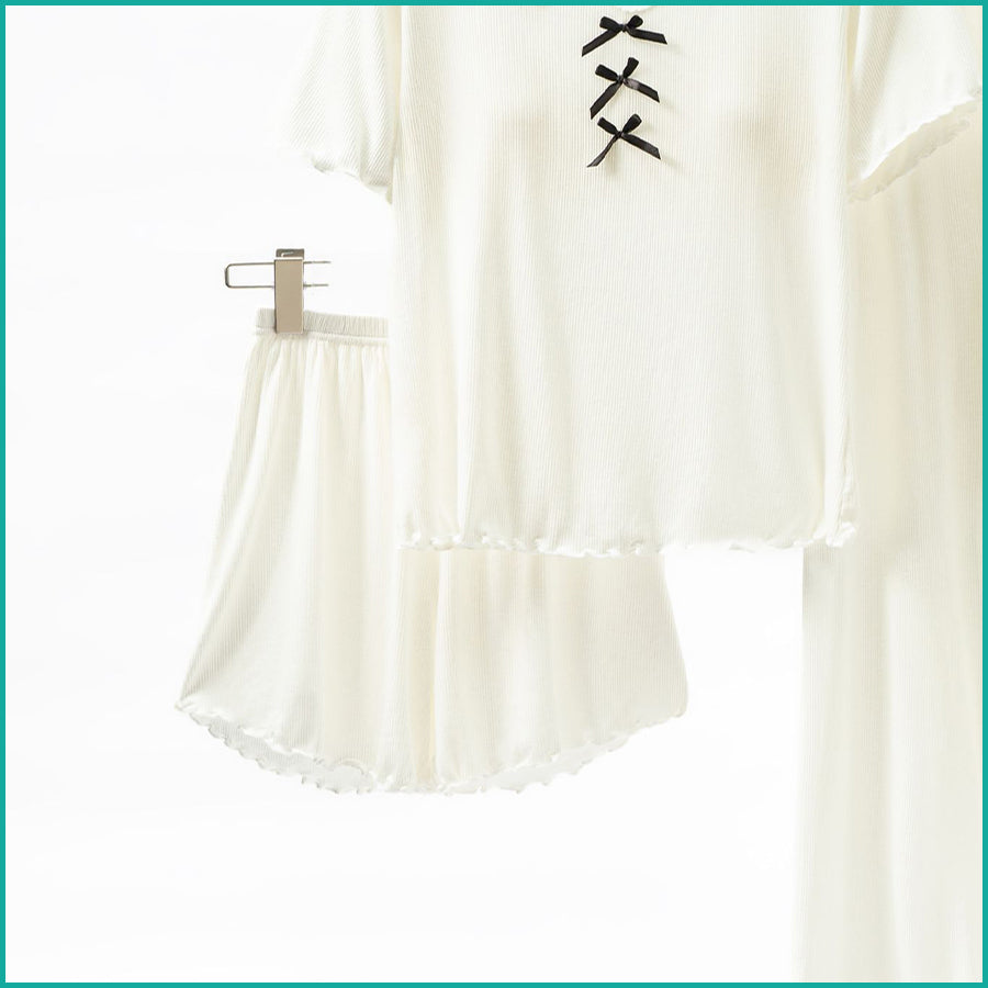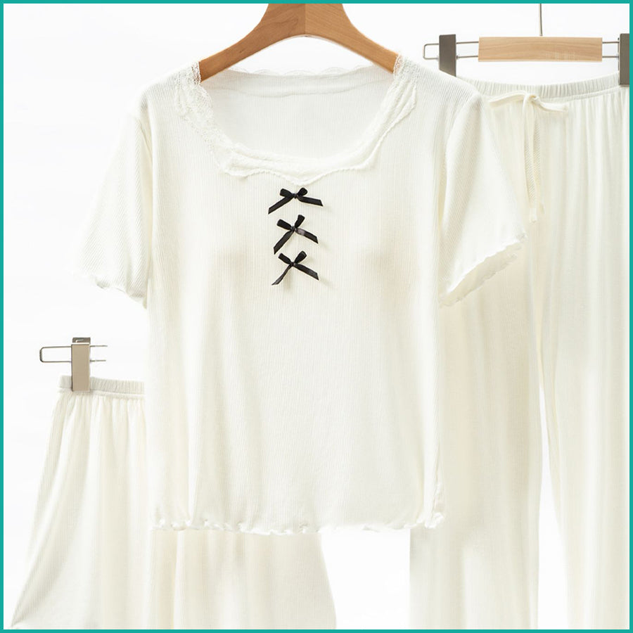 Ladies 3 Pcs Set Loungewear Pajama Set - White