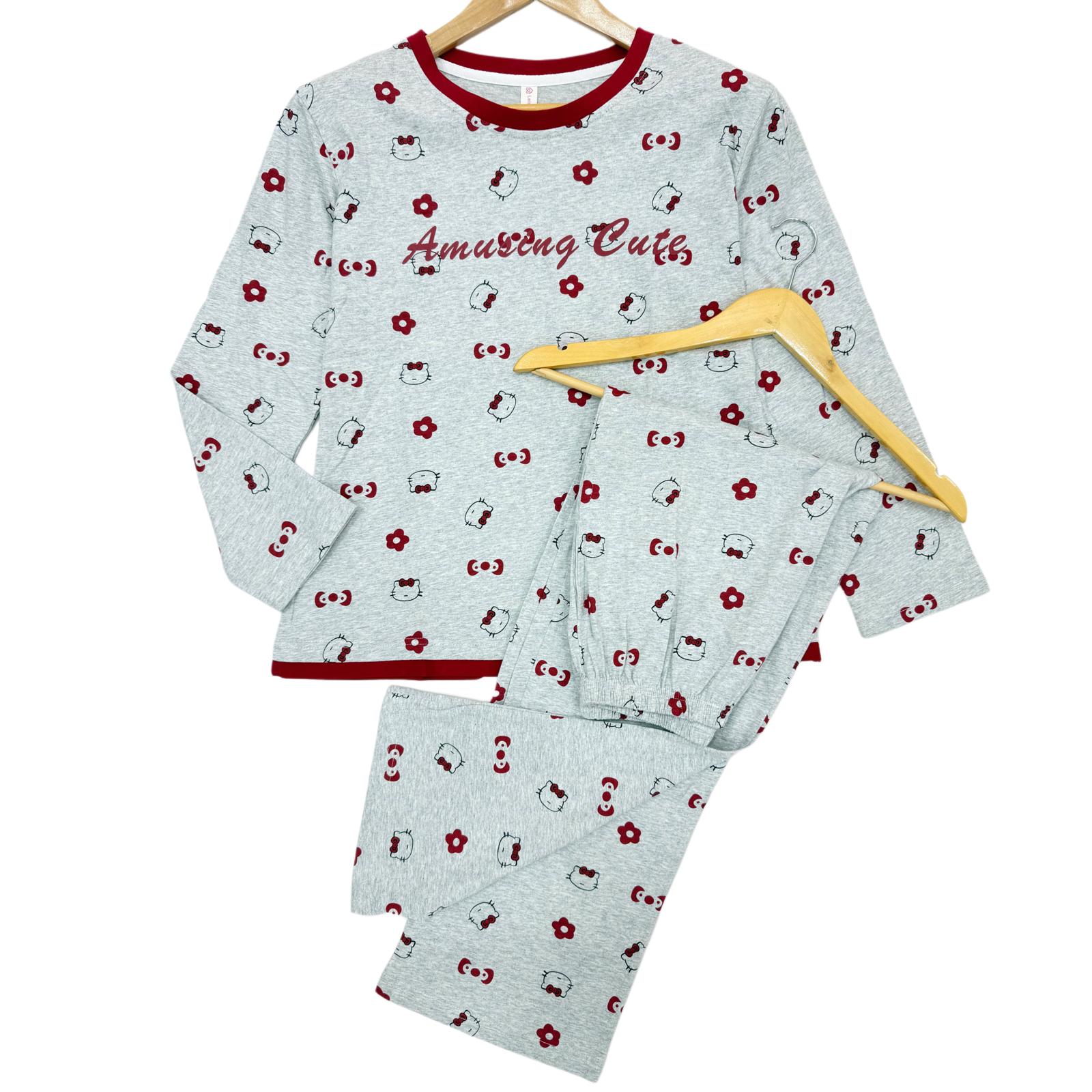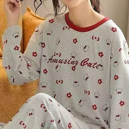 Ladies Cartoon Print Cotton Pajama Set – Long Sleeve Cute