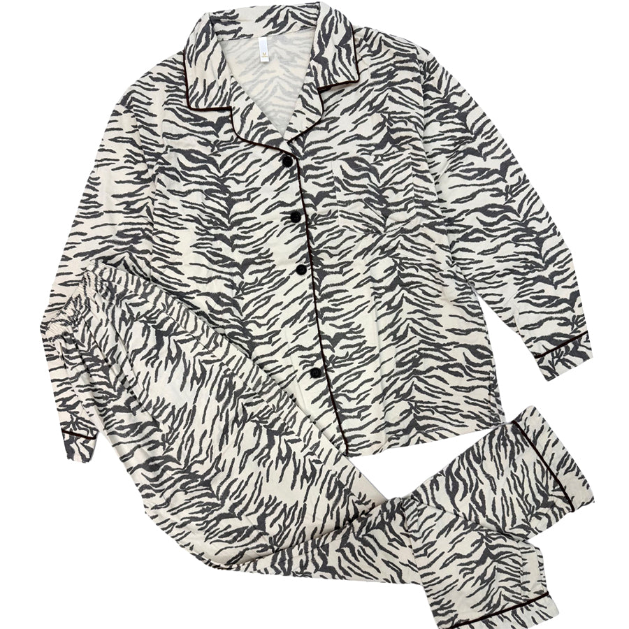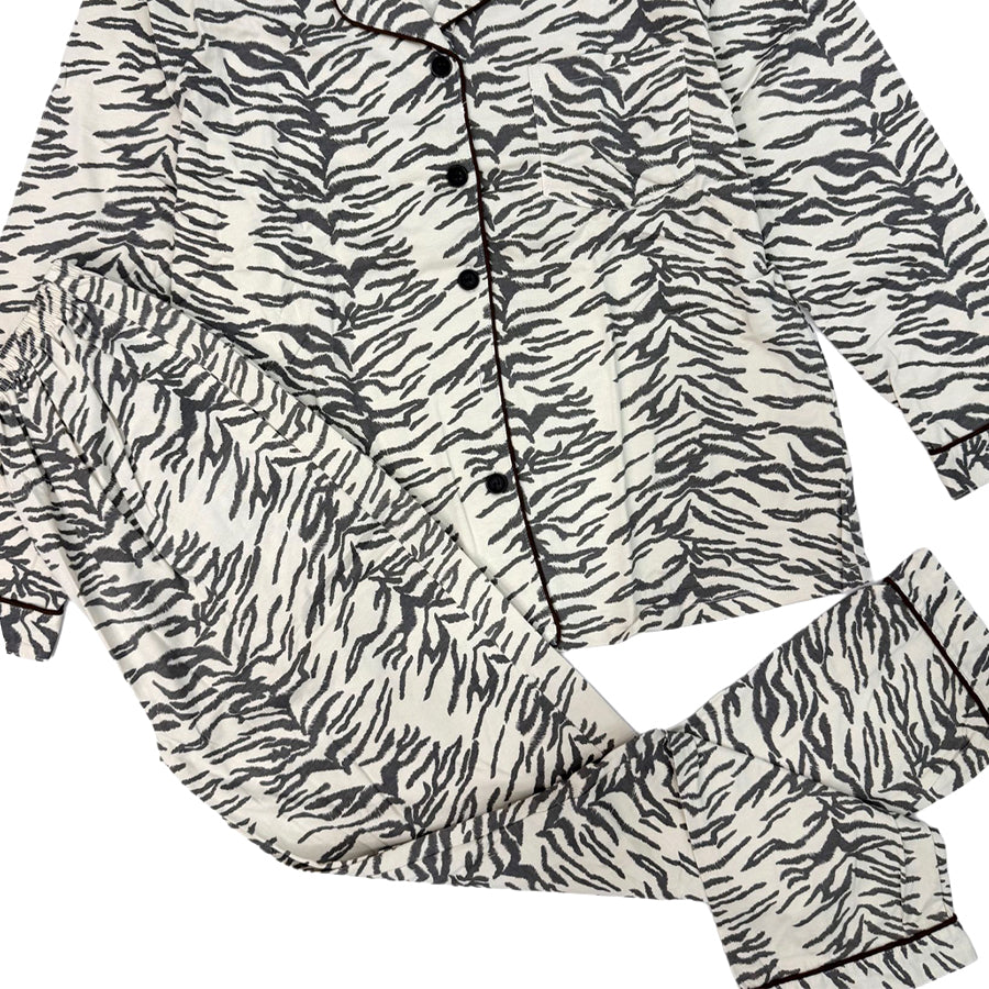 Tiger Ladies Cotton Winter Front Open Loungewear Set - White