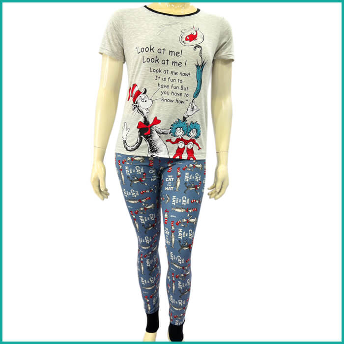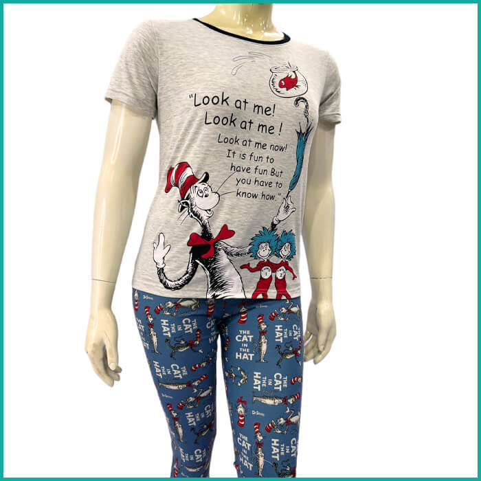 Cat in the Hat Ladies Pajama Set - White Blue