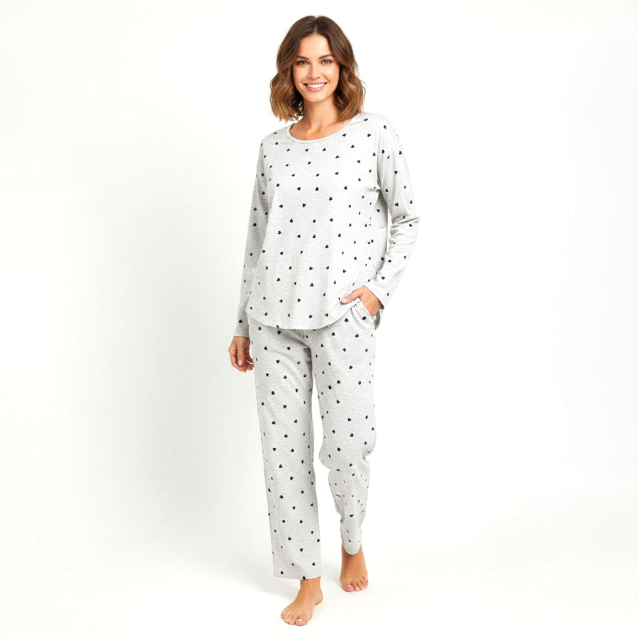 Heart Love Ladies Cotton Lycra Loungewear - Light Grey