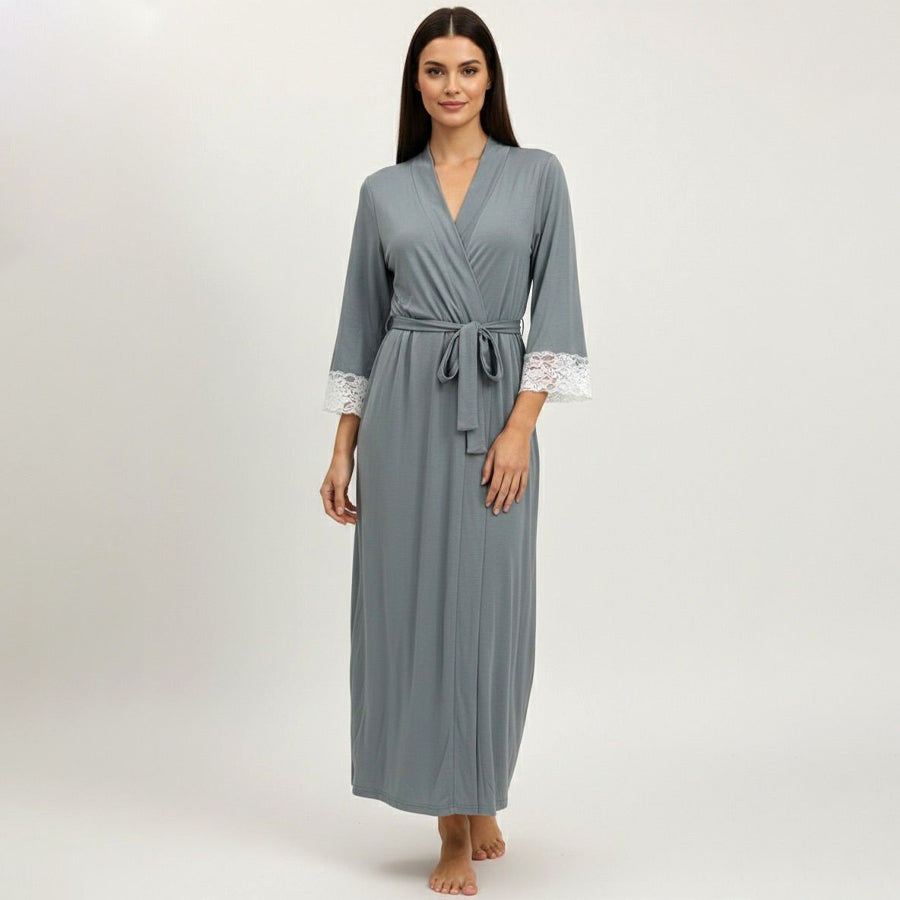 Plain with Lace Ladies Rob - Grey