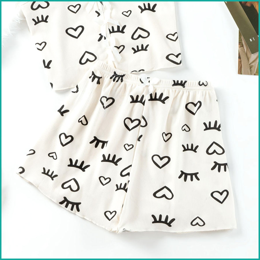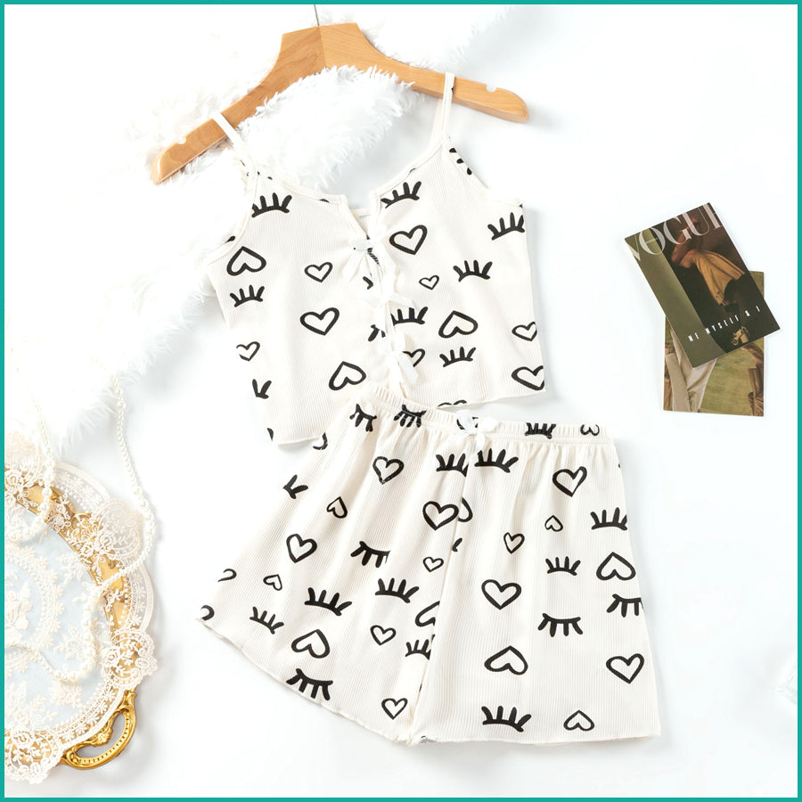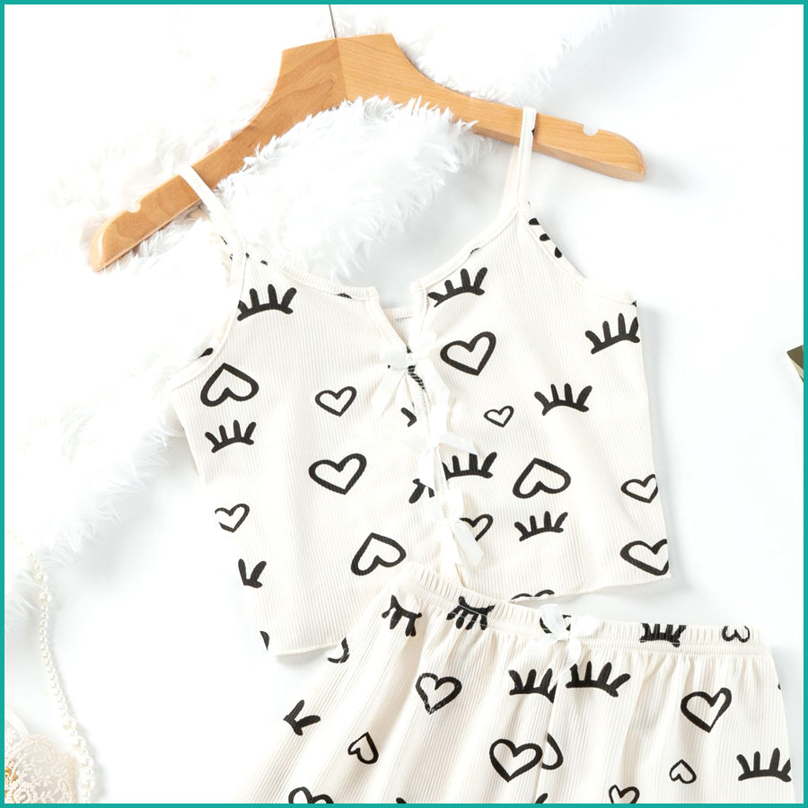 Love Ladies Crop Sleeveless T-Shirt with Shorts - White
