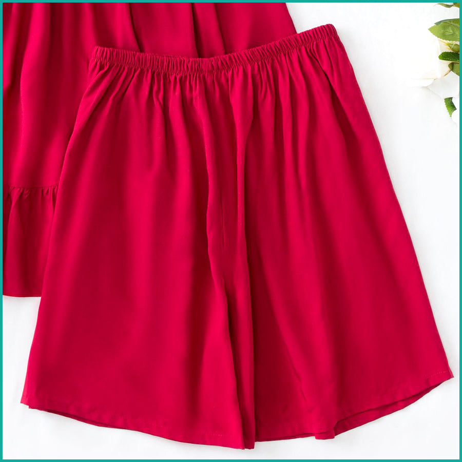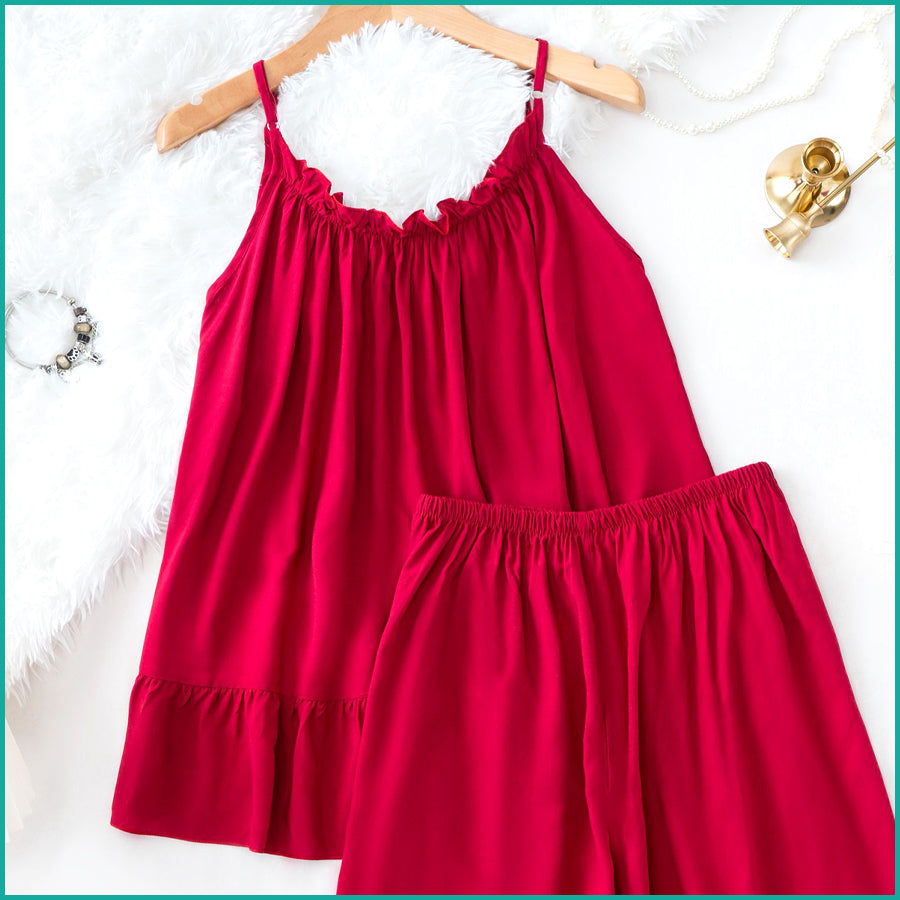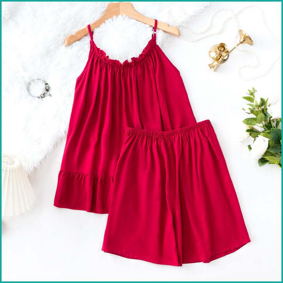Plain Ladies Shorts Set - Red