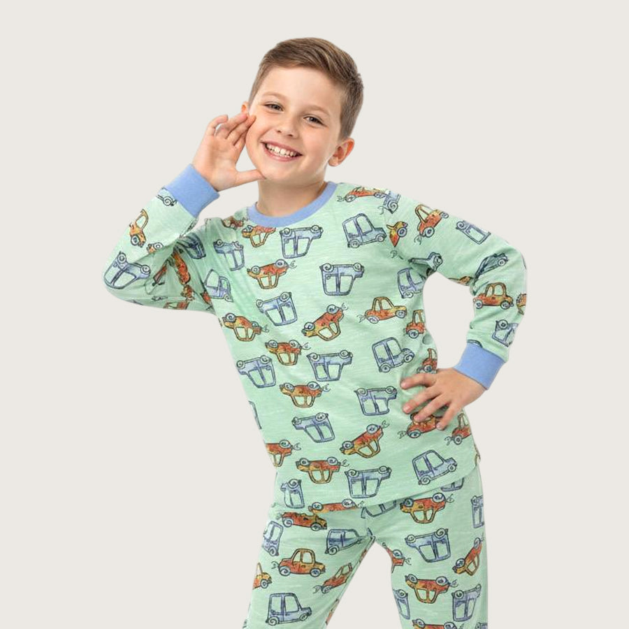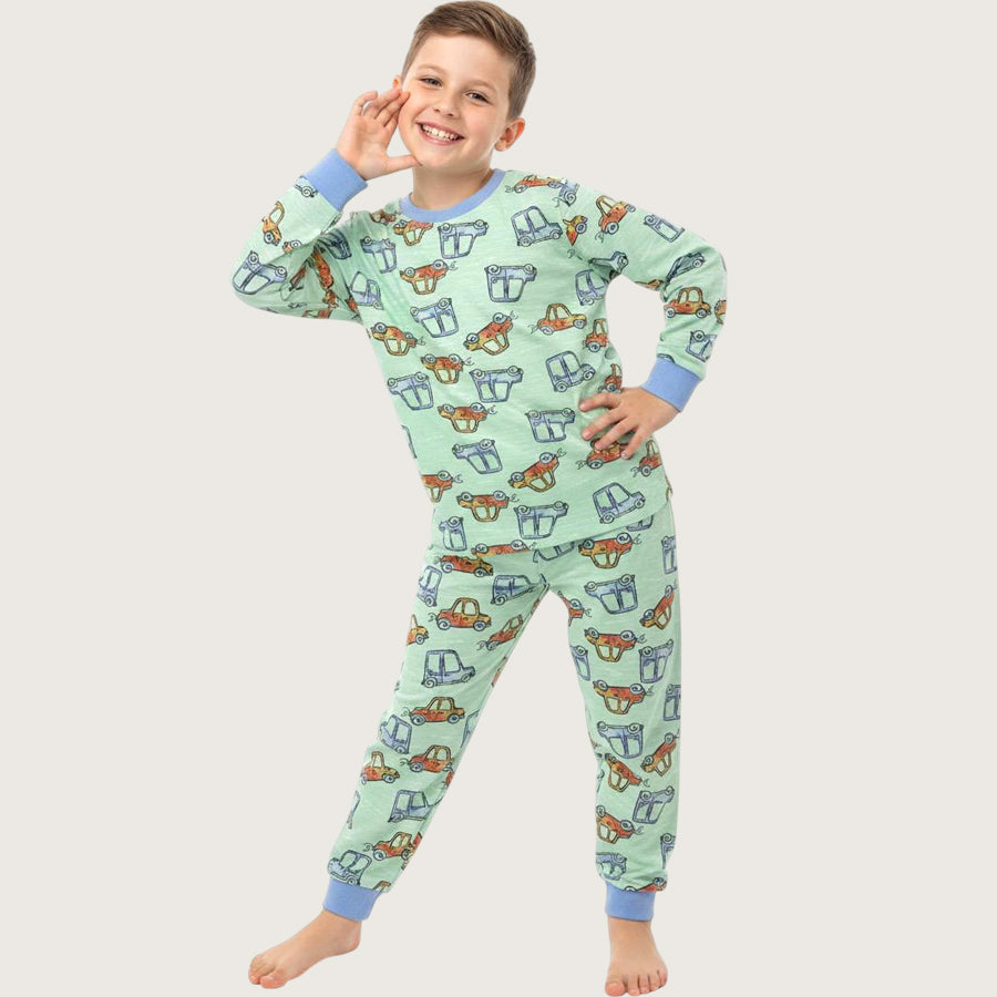 All Car Boys Full Sleeves Pajama Set - Green