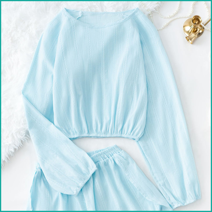 Line Ladies Crop Full Sleeves T-Shirt with Shorts - Sky Blue