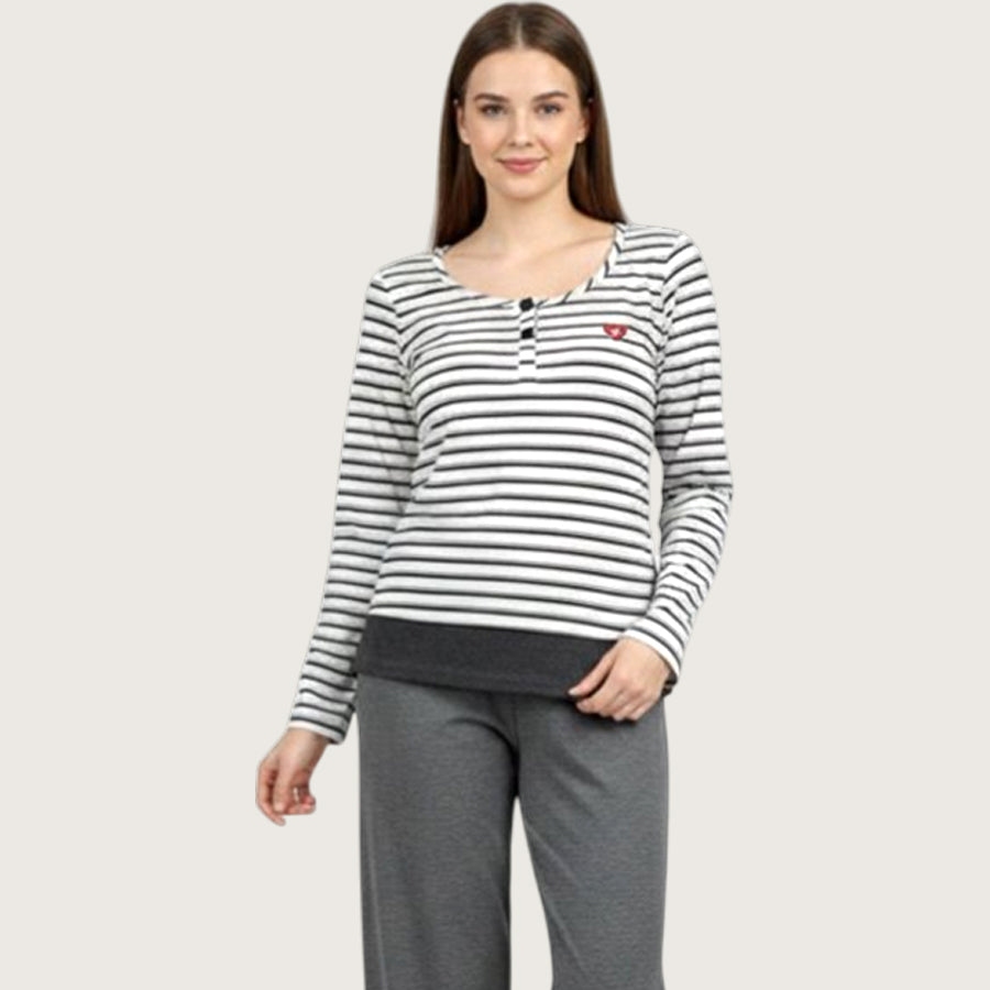 Strips Ladies Pajama Set - White Grey